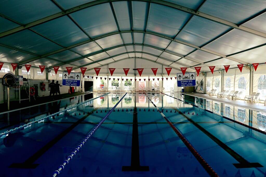 • תיחום בריכות שחייה באמצעות אוהל קונסטרוקציה – שיטת קירוי זו מאפשרת לכם ליהנות מפתרון קירוי ייעודי לצד פתרון מעשי לתיחום הבריכה.